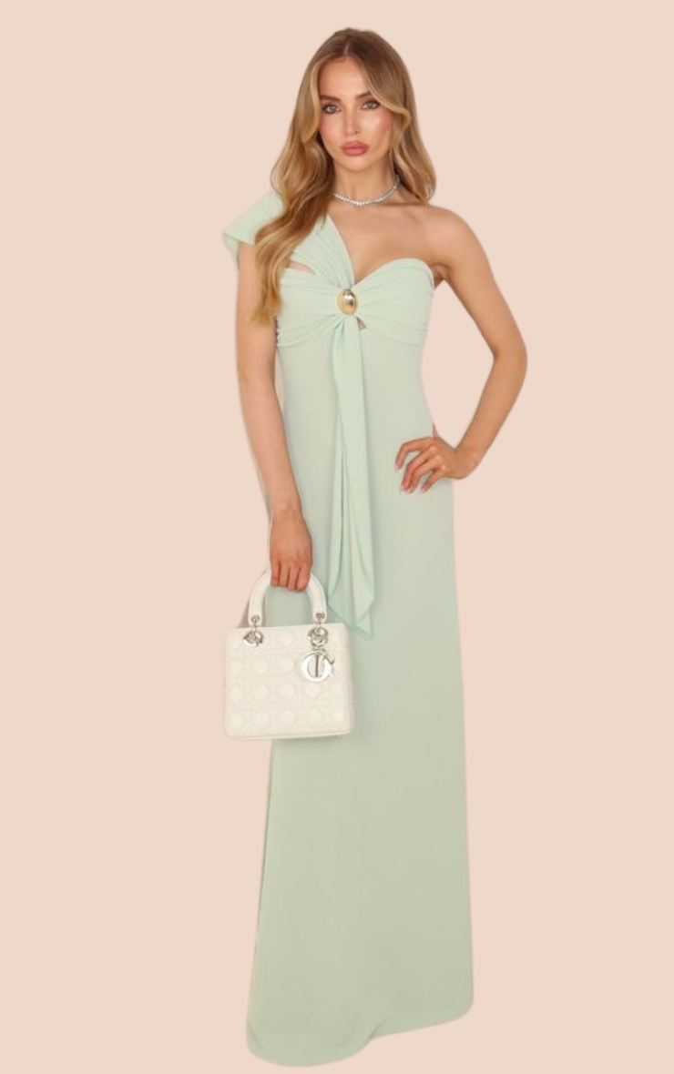 Jodie One Shoulder Maxi Dress in Pistachio